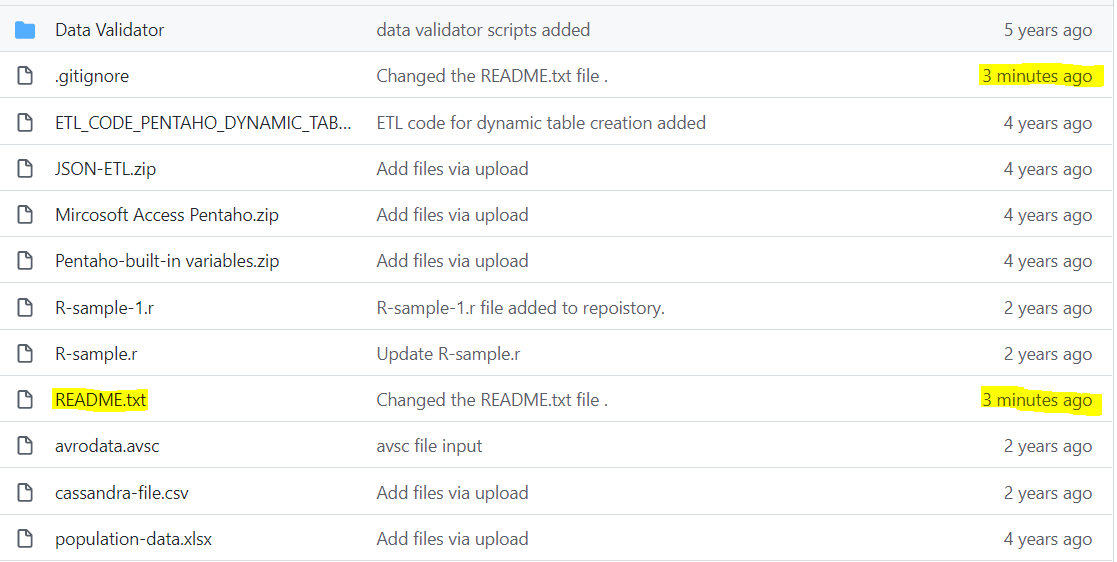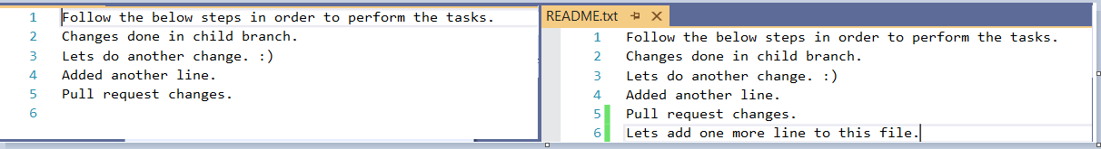 Suppose you have done some changes in the code developed using Visual Sudio . Here, I am changing one file(README.txt). Below is the content of the file before and after changes.